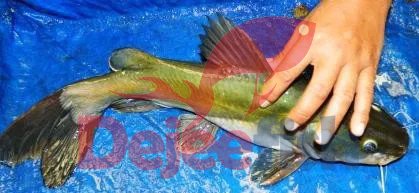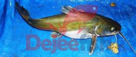 Pembesaran ikan baung dilakukan di kolam tanah. Caranya : siapkan sebuah kolam ukuran 200 m2; perbaiki seluruh bagiannya; tebarkan 4 karung kotoran ayam atau puyuh; isi air setinggi 40 – 60 cm dan rendam selama 5 hari; masukan 10.000 ekor benih hasil seleksi dari pendederan III; beri pakan 3 persen setiap hari, 3 kg di awal pemeliharaan dan bertambah terus sesuai dengan berat ikan; alirkan air secara kontinyu; lakukan panen setelah 2 bulan. Sebuah kolam dapat menghasilkan ikan konsumsi ukuran 125 gram sebanyak 400 – 500 kg.