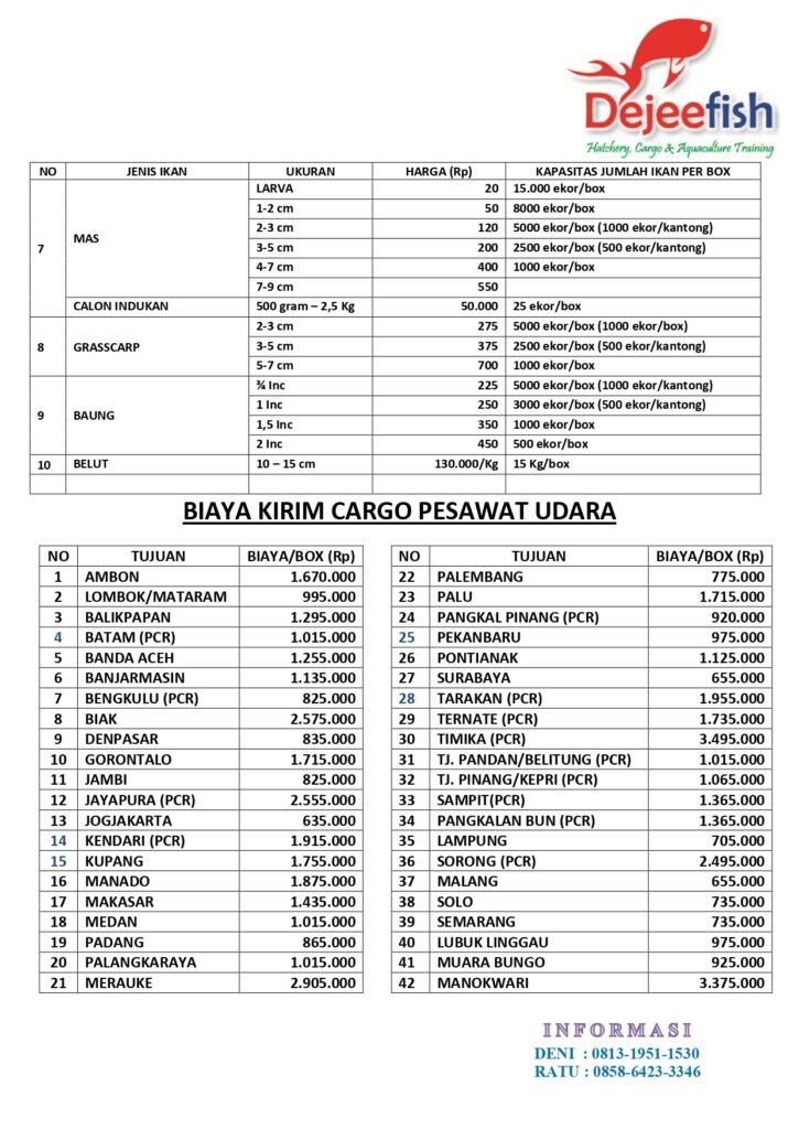 Daftar Harga Ikan (September) 2025 UPDATE